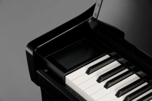 Das anspruchsvollem Erscheinungsbild interpretiert das klassische Klavierdesign neu. Die schlanke Seitenlinie, die hochwertige Verarbeitung und die langsam schließende Tastenklappe runden das elegante Gesamtbild ab.