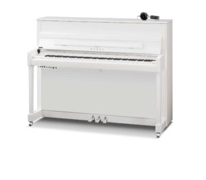 Das 114cm AnyTimeX4 Klavier ist mit einer Stummschaltung für den akustischen Teil des Klaviers und einer hochwertigen Digitalpiano Technik ausgestattet. Beide Farbausführungen sind gegen Aufpreis auch mit silbernen Beschlägen erhältlich.